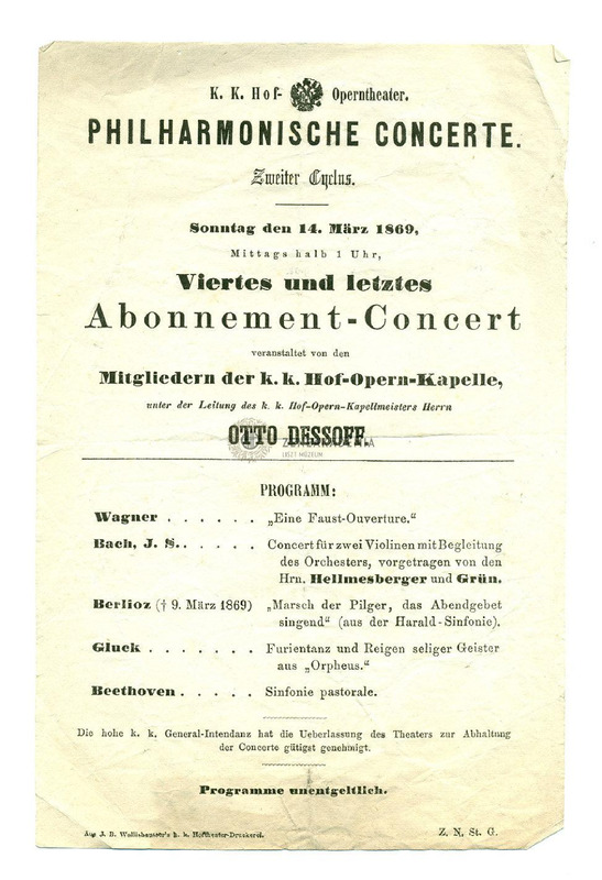 Műsor: Wagner, Bach, Berlioz, Gluck és Beethoven művei. (Közreműködnek a K.K. Hof-Opern-Kapelle tagjai, vez. Otto Dessoff).