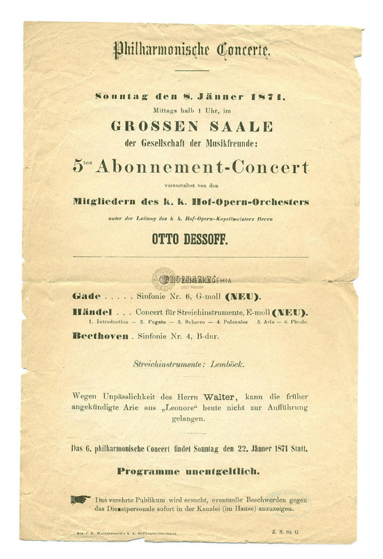 Műsor: Gade, Händel és Beethoven művei. (Közreműködnek a K.K. Hof-Opern-Kapelle tagjai, vez. Otto Dessoff).