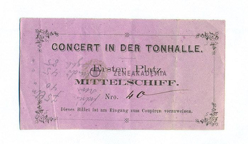 - Concert in der Tonhalle. Erster Platz Mittelschiff. No.40.