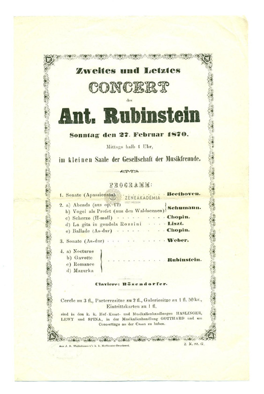 Műsor: Beethoven, Schumann, Chopin, Weber, Rubinstein egy –egy műve, valamint Liszt: La gita in gondola című Rosssini-átirata.