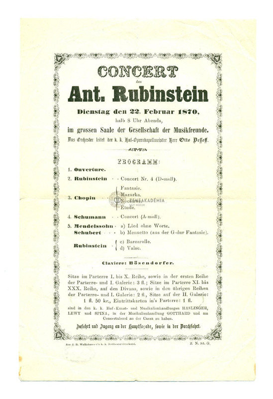 Műsor: Rubinstein, Chopin, Schumann, Mendelssohn és Schubert művei (vez. O. Dessoff).