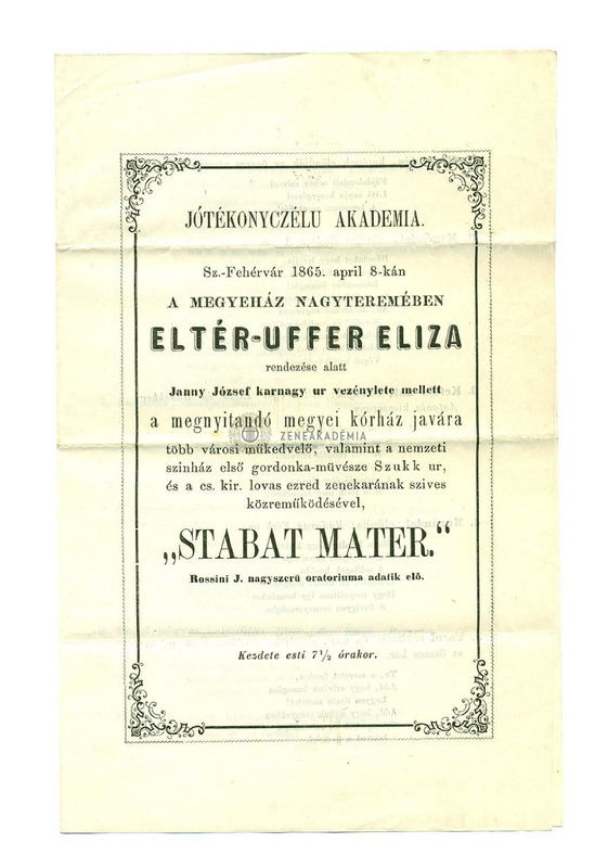 Műsor: Rossini: Stabat Mater. (km. A Cs. Kir. Lovas ezred zenekara, vez. Janny József). Szöveg magyar nyelven.