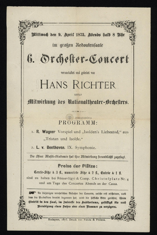 Műsor: Wagner és Beethoven egy-egy műve (km. A Nemzeti szinház zenekara).