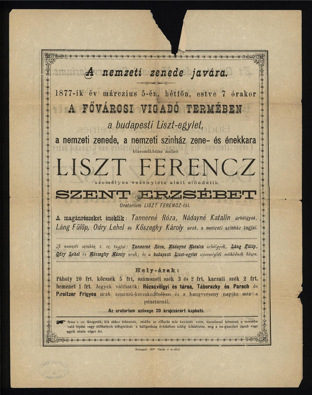 Liszt: Szt. Erzsébet legendája előadása Budapesten, a szerző vezényletével.
