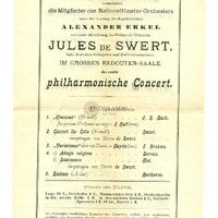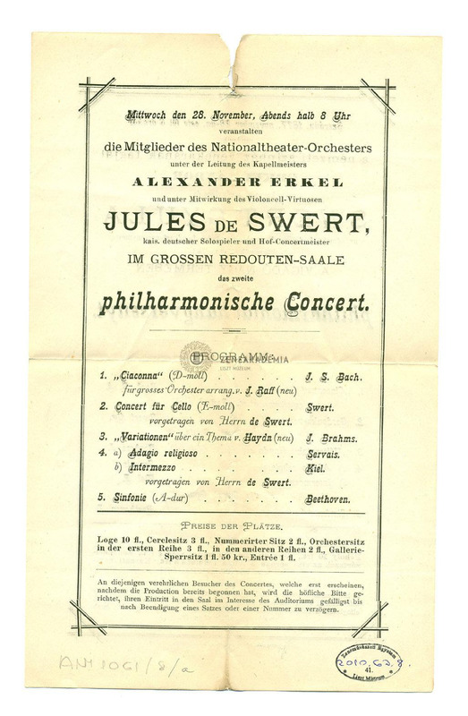 Műsor: Bach, Swert, Brahms, Servais, Kiel és Beethoven művei. Km. a Nemzeti Szinház zenekarának tagjai ill. Swert Gyula (gordonkaművész). Vez. Erkel Sándor