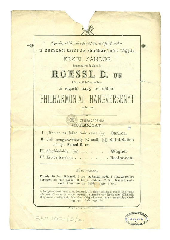 Műsor: Berlioz, Saint-Saëns, Wagner és Beethoven művei. Km. a Nemzeti Szinház zenekarának tagjai ill. Roessl D. (zongora). Vez. Erkel Sándor