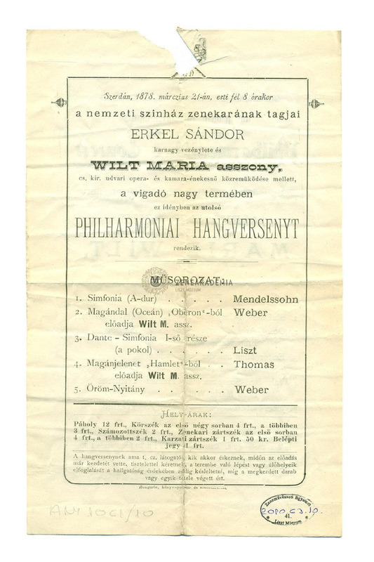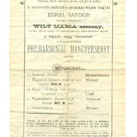 Műsor: Mendelssohn, Weber, Thomas művei valamint Liszt: Dante szimfónia I.rész. Km. a Nemzeti Szinház zenekarának tagjai ill. Wilt Mária (operaénekesnő). Vez. Erkel Sándor