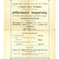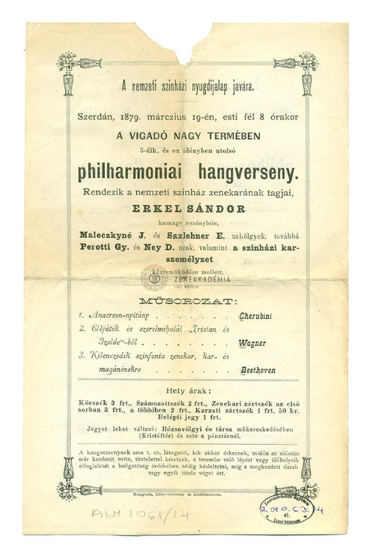 Műsor: Cherubini, Wagner és Beethoven művei. Km. a Nemzeti Szinház zenekarának tagjai ill. Maleczkyné J., Saxlehner E., Perotti Gy. és Ney D. valamint a Nemzeti Színház énekkara. Vez. Erkel Sándor.