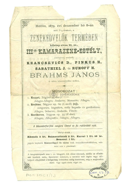Műsor: Mozart, Brahms és Beethoven művei. Km. Brahms ill. Krancsevics D. Pinkus H., Sabathiel J., Ruhoff H.