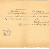 Egy rendőrségi főtiszt elismervénye a Liszt-összkiadás 12 kötetének átvételéről a szombathelyi városi zeneiskola számára miniszteri engedély alapján továbbítás céljából.