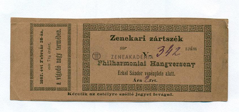 Műsor: Wagner és Beethoven művek. Közreműködik a Nemzeti Szinház zenekara, vezényel Erkel Sándor. Mellékletek: belépőjegy ill. Siegfried halálának szövege németül, gót betűkkel.