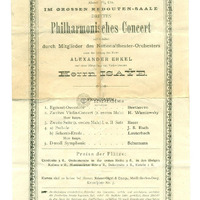 Műsor: Beethoven, Wieniawsky, Esser, Bach, Lauterbach és Schumann művei. Km. a Nemzeti Szinház zenekarának tagjai ill. Isaye (hegedű). Vez. Erkel Sándor.