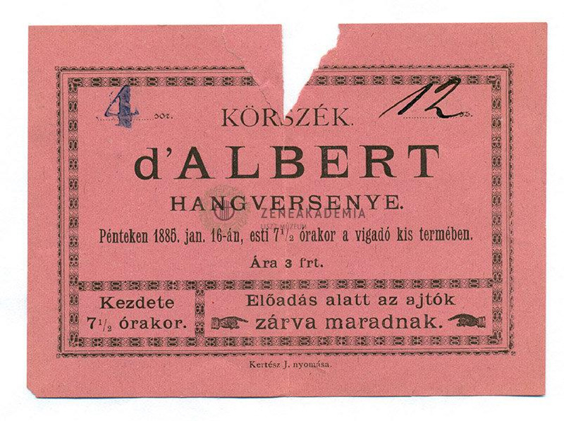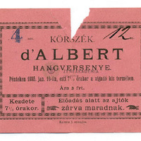 Műsor: Bach, Beethoven, Chopin, D’Albert, Rubinstein művei, valamint Liszt: Liebestraum, Polonaise, Valse Caprice és Rhapsodie Hongroise (?). Melléklet: 2 db belépő a koncertre.