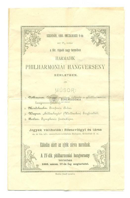 - Műsor: Volkmann, Mendelssohn, Wagner és Berlioz művek. Berlioz: Fantasztikus szimfónia szövege.