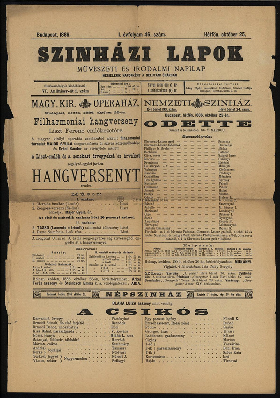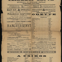 Műsor: Liszt: Heroide funébre, Esz dúr zongoraverseny, Tasso és a Dante szimfónia első része. Közreműködik a filharmóniai társulat zenekara, Major Gyula (zongora), vez. Erkel Sándor. A műsor a Színházi lapok I. évf. 46. számában jelent meg.