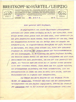 A Liszt-összkiadással kapcsolatos Breitkopf és Härtel-levelezés 50 példány magyar nyelvű kiadásával kapcsolatban, költségek, iratok az átutalás kérelmezéséről és engedélyezéséről.