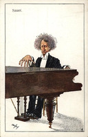 Képeslap Emil von Sauert ábrázoló karikatúrával