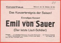 Emil von Sauer (a plakát állítása szerinti utolsó Liszt-tanítvány) koncertje.