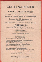 Centenáriumi Liszt-ünnepség (Bécs) műsora.
