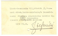 A Franz Liszt Gesammelte Ausgabe köteteinek ajándékozásáról szóló értesítések, elismervények.