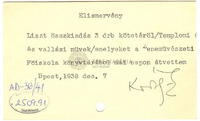 A Franz Liszt Gesammelte Ausgabe köteteinek ajándékozásáról szóló értesítések, elismervények.