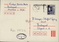 Kun Imre levelezőlapja Szomjas-Schiffert Györgyhöz